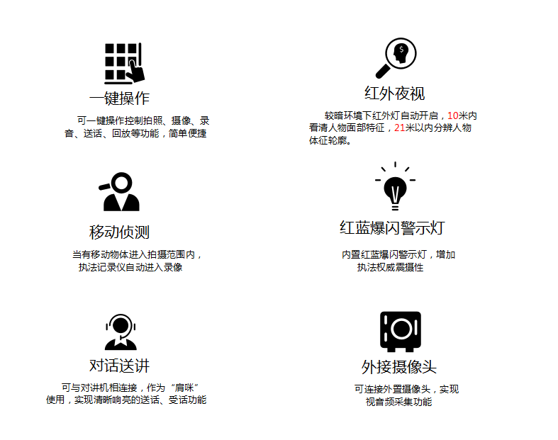 evo真人视讯DSJ-200F 执法仪(法院/政府/城管)拍摄像素高达5000万,广角镜头137,拍摄画面精细而全面,大容量电池支持陆续在工作12小时不断电